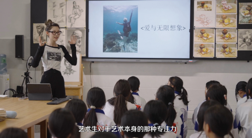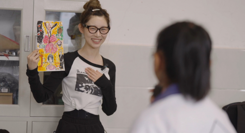 在說到畫畫這一主題,痞幼表達自己對美術(shù)的獨特見解。她認(rèn)為,美術(shù)本身需要創(chuàng)意力,除了享受制作過程中的專注,“個人風(fēng)格也是個很重要的東西”。因為自己在學(xué)生時代沒有老師教過如何去創(chuàng)造屬于自己的藝術(shù)品,所以痞幼更想為他們撐起一把名為創(chuàng)意的傘。她毫不吝嗇地向孩子們分享自己的獨家感悟,“你畫畫看到這個球是圓的,你可以不把它畫成圓的,在你的世界里它可以是一個五角星。”