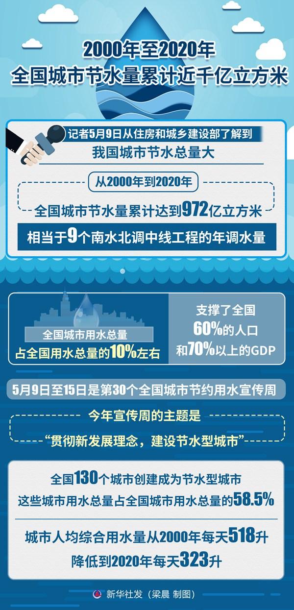 2000年至2020年全國城市節(jié)水量累計(jì)近千億立方米