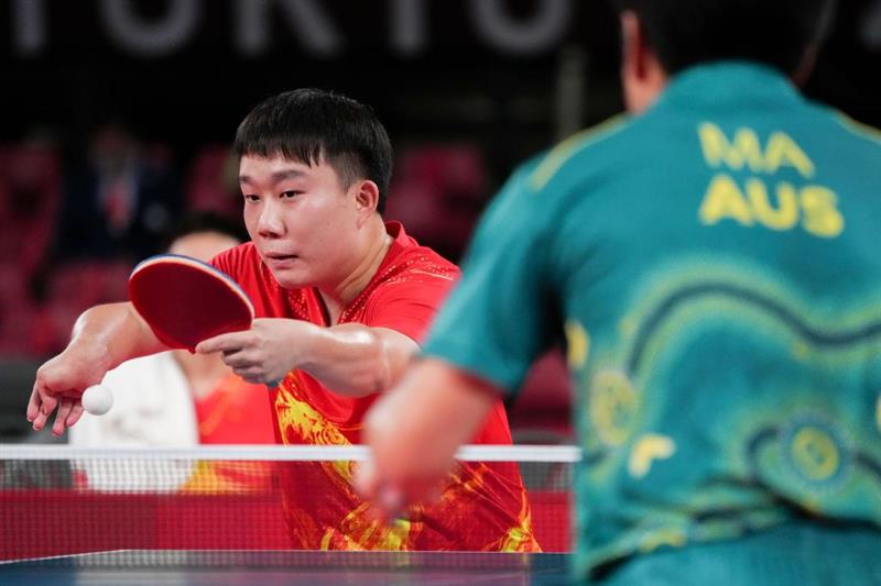 2021年9月3日,中國隊選手連浩在東京殘奧會乒乓球男子團(tuán)體9-10級決賽中回球。新華社記者 朱煒 攝