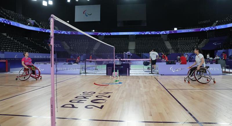 8月24日,巴黎殘奧會中國體育代表團(tuán)羽毛球運動員在訓(xùn)練中。新華社記者 才揚 攝