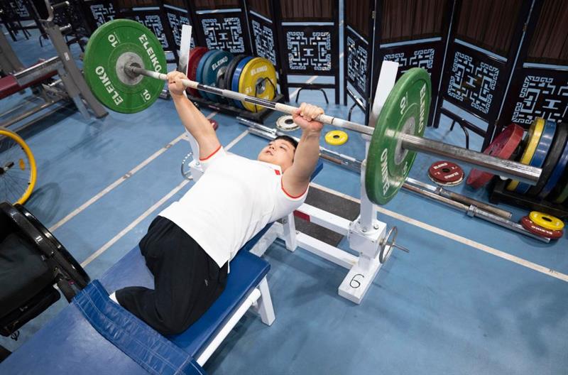 5月20日,東京殘奧會男子舉重冠軍齊勇凱在訓(xùn)練中。新華社記者 才揚 攝