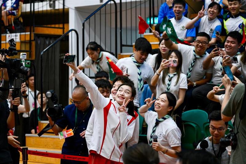 ??“我最想見的就是潘展樂和全紅嬋?!眮碜园拈T童軍總會的張錦佩說,潘展樂的勇氣、全紅嬋的活力深深吸引著她,他們不畏困難、為國爭光,是自己學習的榜樣?!案兄x國家,感謝澳門,讓我能有這樣的機會?!?/span>