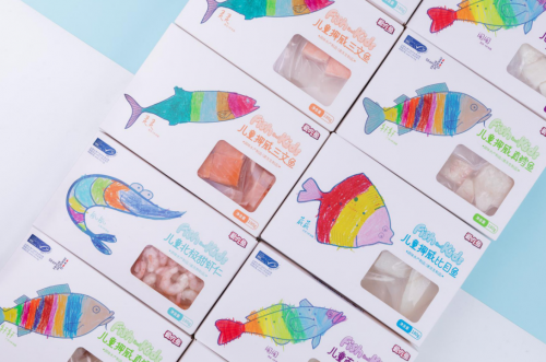 例如在兒童系列產(chǎn)品的包裝設(shè)計上,當(dāng)前市面上的輔食多以大包裝為主,這也意味著媽媽們在準(zhǔn)備輔食時要反復(fù)解凍,并不利于食材的衛(wèi)生與寶貝的健康。為解決這一難題,“愛吃魚”獨(dú)具貼心設(shè)計,獨(dú)立小包裝滿足兒童每日營養(yǎng)需求,不隔夜、不隔頓,保證食材衛(wèi)生無菌,解凍也更快捷,讓媽媽們更省時。此外兒童系列產(chǎn)品的外包裝來源于小朋友的涂畫產(chǎn)品,從眾多繪畫作品中讓愛吃魚的寶寶們選擇最喜歡的樣式。