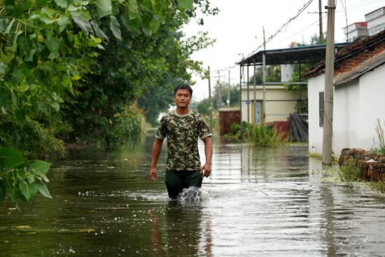今年27歲的張恒是江西省九江市柴桑區(qū)新洲人。2011年,張恒應(yīng)征入伍,后被抽調(diào)到天安門國旗護(hù)衛(wèi)隊。退伍后,考慮到父親身患?xì)埣?,母親身體也不好,張恒選擇回鄉(xiāng)務(wù)農(nóng),照料父母。受今年洪水影響,張恒承包的60畝地受損嚴(yán)重。他并沒有因此消沉,積極同父親一起投身到防汛抗洪戰(zhàn)斗中。圖為張恒結(jié)束巡查工作后蹚水回家。新華社記者 周密/攝